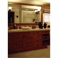 Whether you want customized, pullout pantries, flip down utility trays, slide out recycling drawers, door mounted spice racks, or pop up appliance bins no detail is overlooked. I can craft cabinetry out of solid woods and high quality veneers or more economical and environmentally friendly recycled particle boards. Almost any kitchen and bathroom that can be imagined I can construct.